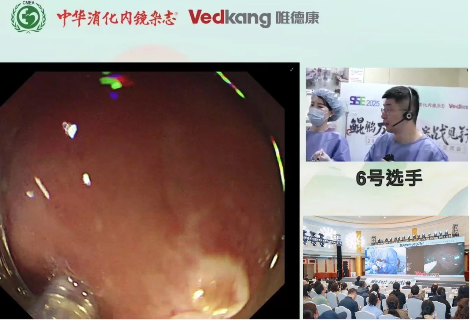 “ESD手术实战大赛由中华消化内镜杂志主办,是国内消化内镜领域最具权威性与影响力的赛事之一,参赛选手需通过多轮严格筛选,其奖项被视为行业内技术实力的‘试金石’。” 从初赛、半决赛的激烈角逐,最终来自全国三甲医院的10位中青年医师晋级全国总决赛,大会同台竞技并全程直播,郑家垚凭其精湛的技术、沉稳的台风,展示了一例胃早癌ESD手术,获得专家评审的一致好评。