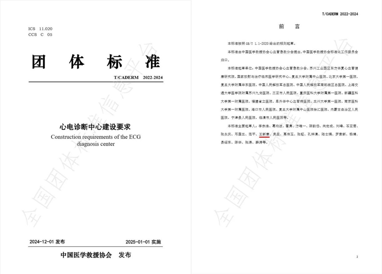 参与“心电诊断中心建设要求(团体标准)”制定